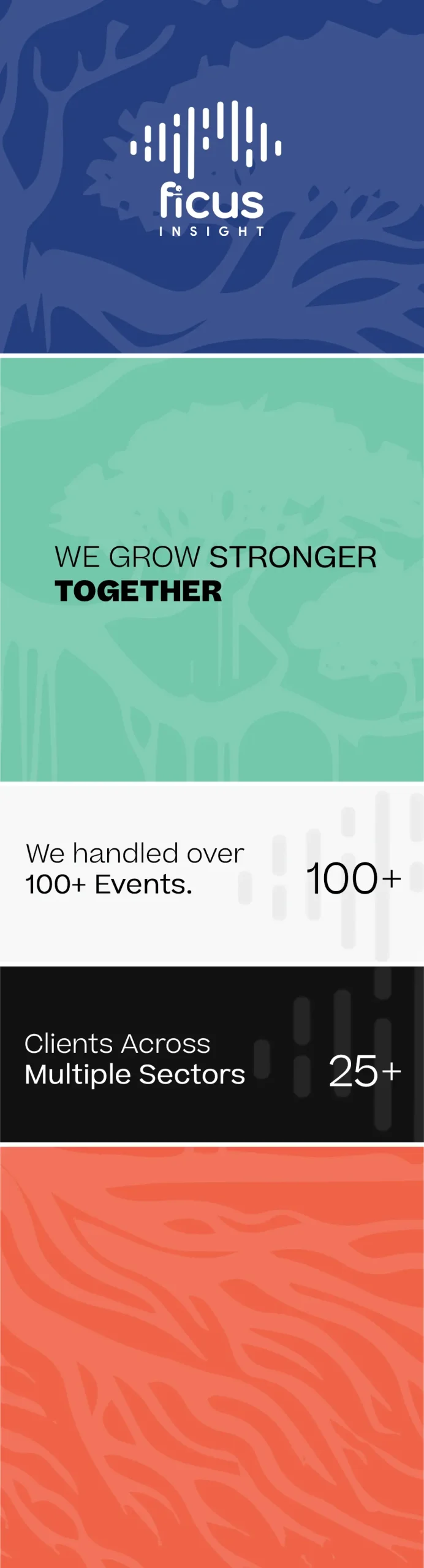 Our responsibility is to assist our clients in telling their journey in a way that appeals to, inspires, and engages their audience. Our commitment to originality, innovation, and perfection is the same for every project, be it an industry seminar, corporate event, exhibition, or product launch. When you partner with Ficus Insight, you’re not just hiring an event management company; you’re committing to a team of creative thinkers, analysts, and industry experts. We’ve now successfully handled over 100 events and established great collaborations with clients across multiple sectors.
